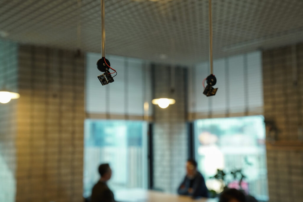 The installation is made up out of two connected spaces. The first space, the physical one, was in the cafe next to Art Center Nabi. 60 Cameras were placed in this space, all in a different location and pointing in different directions. For each of these physical cameras the precise location and orientation was recorded, meaning we know exactly where each camera is in relation to the others.