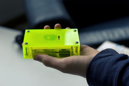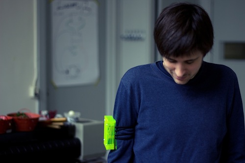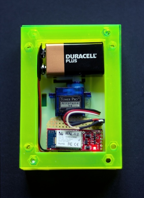 The set-up consists of a custom built circuit (ATtiny, servo, battery, and bluetooth module) that connects to an Android phone, enabling it to keep track of incoming pokes. The circuit is housed in a laser-cut box you can wear on your arm.